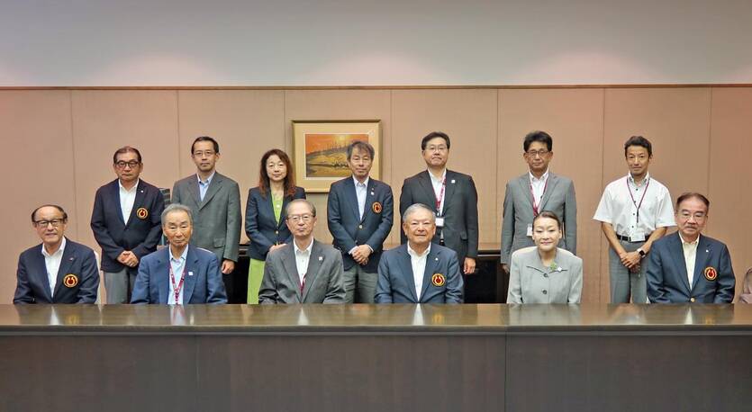 出席者は、一般社団法人甲南大学同窓会甲南会から、丹羽一郎会長、道満善弘専務理事、吉井正幸常務理事(長期計画部長)、冨居雅人常務理事(広報部長)、松岡左知子理事(事業部副部長)、瀧川俊治事務局長が、学園からは長坂悦敬理事長、片山勉副理事長、中井伊都子学長と、つながる学園推進室などから、合わせて13人が出席しました。