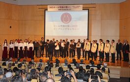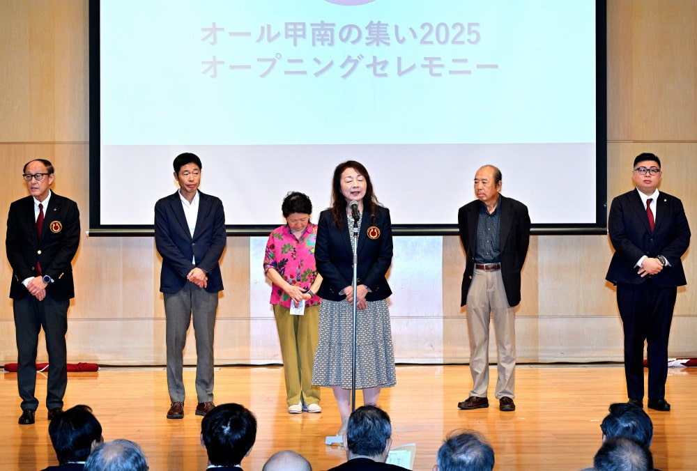 その後は、「世界甲南会」があり、ロスアンゼルス、テキサス、フィリピンと海外の甲南会をはじめ、各地甲南会の会長や代表者らが出席。神戸、宝塚、西中国の新会長がお披露目の挨拶をしました。