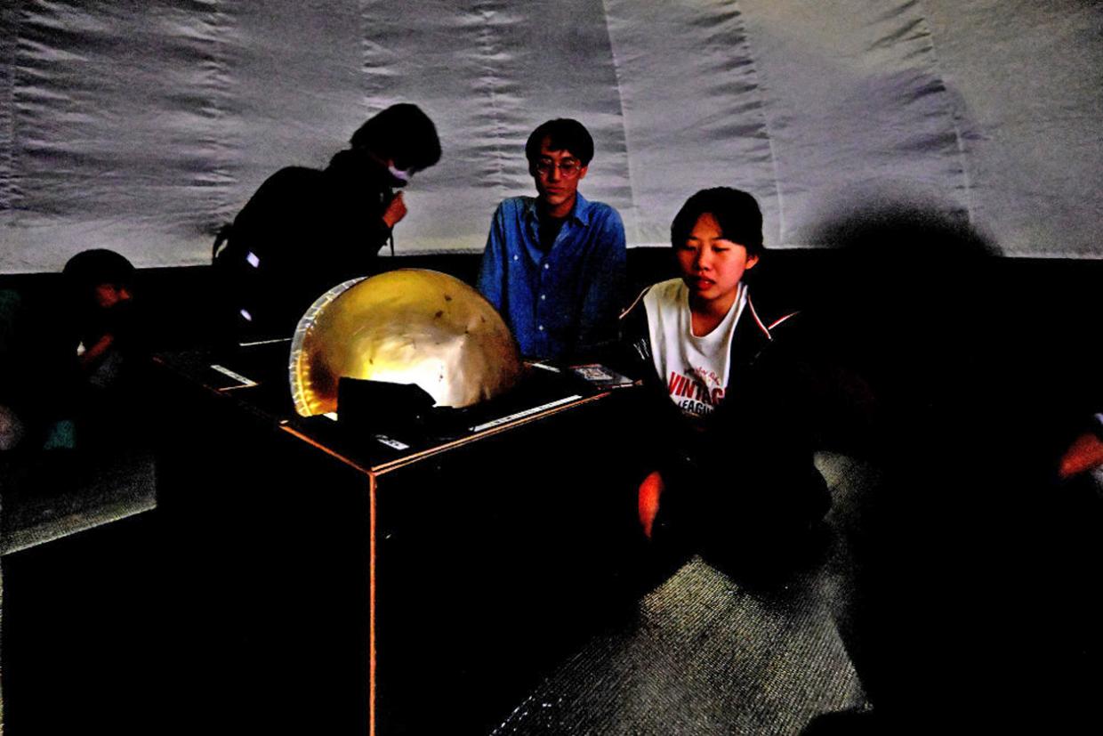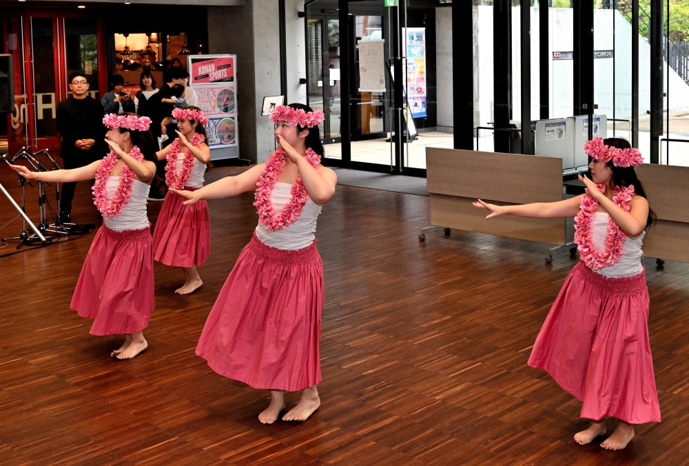 オープニングイベントが終わると、大食堂「HIRAO DINNING HALL」では、大人気企画「ホームカミングランチ」が始まり、クラブやサークル、ゼミの仲間が集まって、旧交を温め合いました。iCommons(アイコモンズ)Agoraでは、マンドリンの演奏やフラのステージ、チアリーディングなど、卒業生や現役生らによる各種パフォーマンスや、キッズ抽選会、甲南大学ビデオCMコンテストの発表などがありました。また、甲友会館では写真部のOB・OGによる作品展や、天文同好会によるプラネタリウムも人気を集めました。