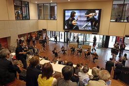 iCommons 2階のキッズコーナーでは、似顔絵コーナーや囲碁将棋教室など終日子どもたちの歓声が響きました。また、甲友会館では、世界で活躍するアカペラグループ「宝船」のライブがあり、約1時間、「スペイン」「しあわせ運べるように」など洗練された美しい歌声に聴衆は癒されました。
