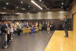 午後は甲友会館で「第19回甲南歌唱祭」があり、多彩に寮歌や部歌が披露され、iCommons地下1階のiStageでは、若い卒業生を招いたイベント「Under30のつどい」があり、20代の約100人が参加。鳥谷さんや中井学長のスピーチに励まされたほか、ブレイキン(ブレイクダンス)の世界チャンピオンでマネジメント創造学部の現役生である藤ヶ崎大海さんが、兄の陸さんとともに、音楽に乗ってキレッキレのパフォーマンスを見せてくれました。また参加者は各界で活躍する年配のOB・OGらとの名刺交換や会話も楽しみました。