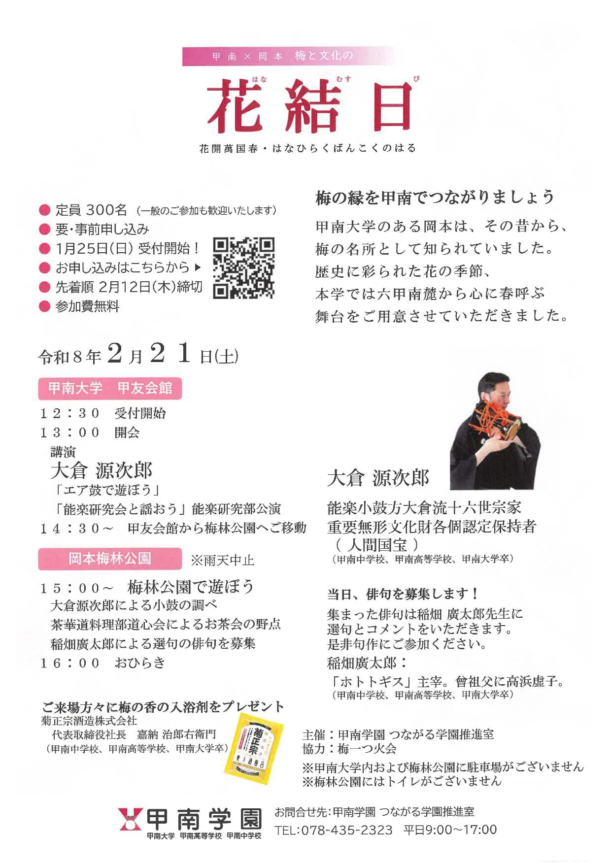 ※<甲南学園からのご案内>甲南×岡本 梅と文化の「花結日」開催のお知らせ