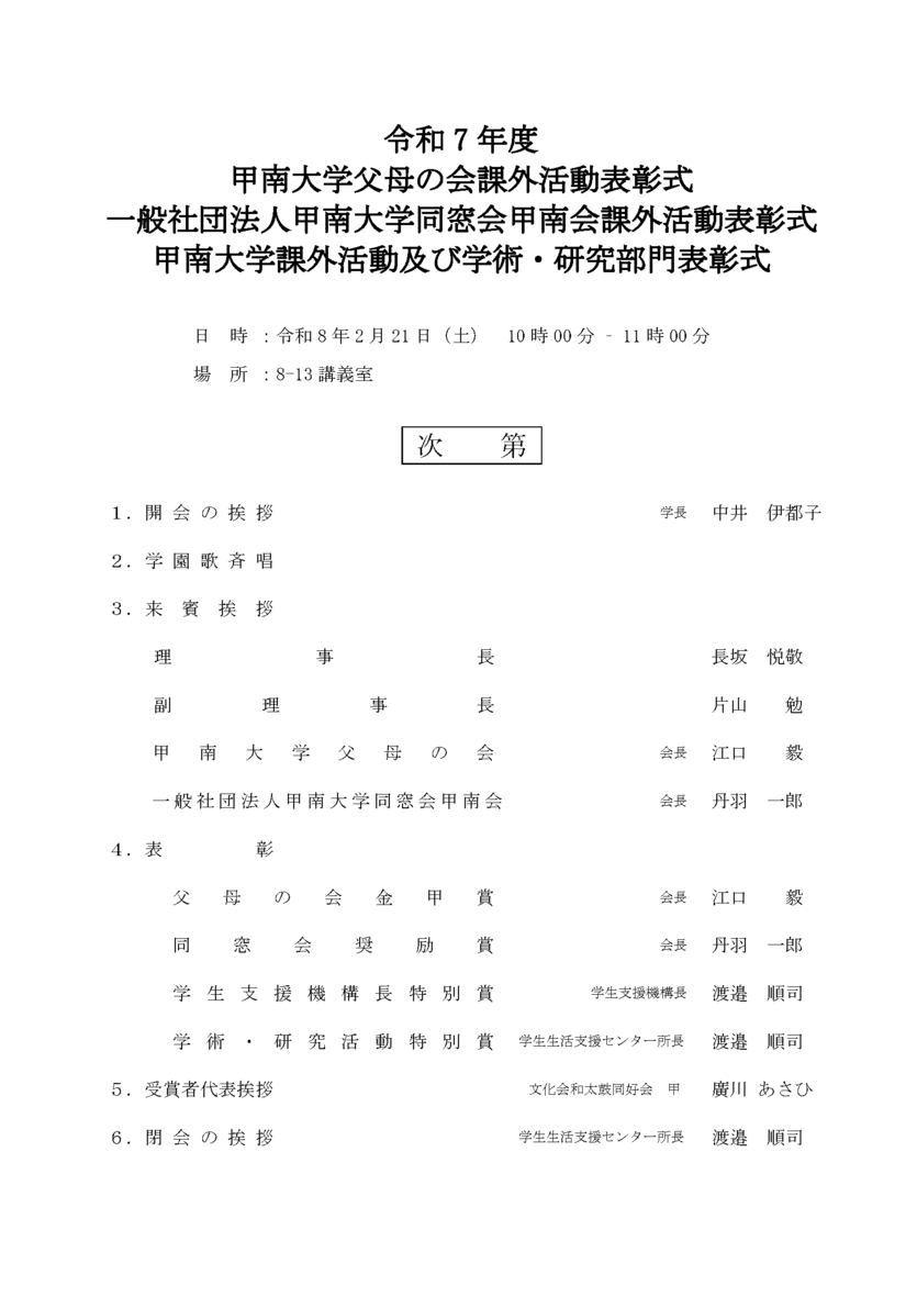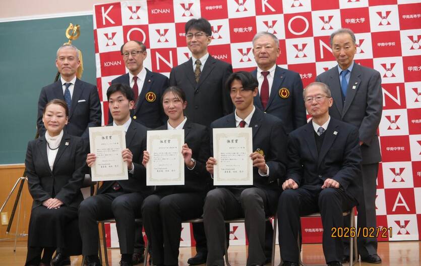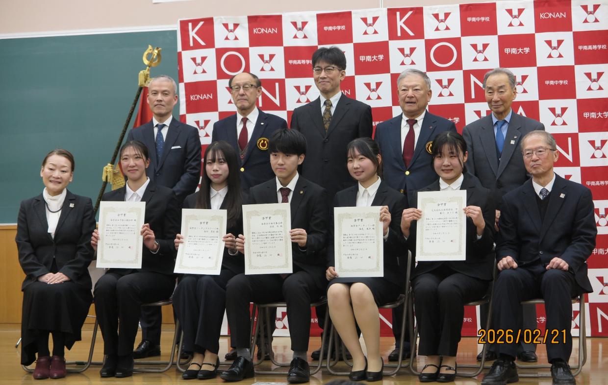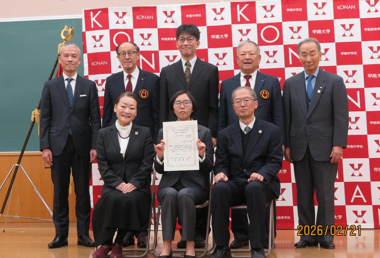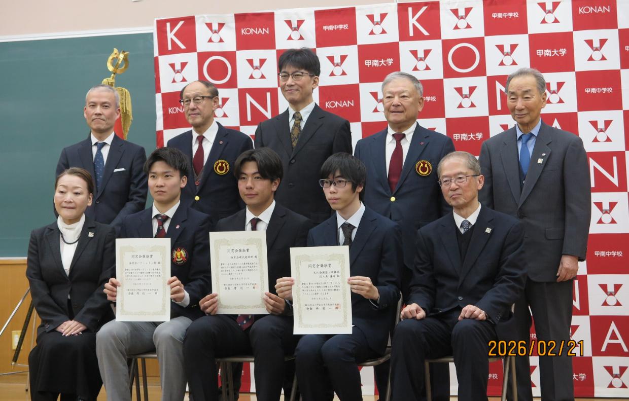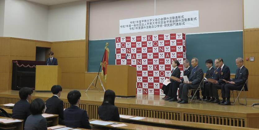 2026年2月21日(土)甲南大学岡本キャンパス8号館にて、「令和7年度 甲南大学課外活動及び学術・研究部門表彰式」が執り行われました。今年度の「課外活動」・「学術・研究部門」で優秀な成績を収め甲南大学の名を高めた団体・個人が表彰され、その後に「体育会表彰式」が開催されました。
