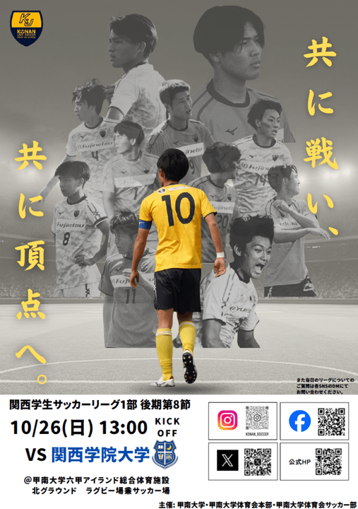 甲南大学体育会サッカー部は現在、関西学生サッカーリーグ1部で首位争いを繰り広げております。