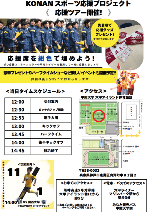 | 場所 | 甲南大学六甲アイランド総合体育施設北グラウンドラグビー場兼サッカー場 |