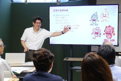 総会終了後はお天気キャスターとして活躍中の気象予報士兵頭哲二さん(平成15年理学部卒)に「東北地方の天候の特徴・今年の冬の見通し」をテーマに講演いただきました。時節柄活発な質問が飛び交い盛り上がりました。